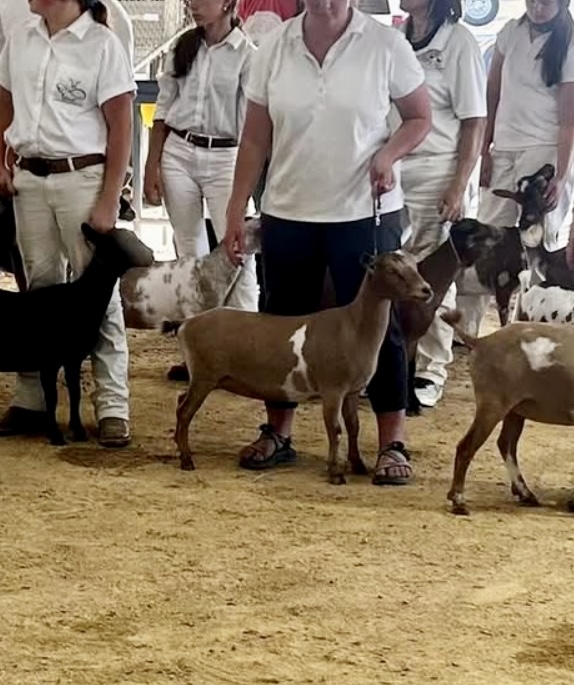 This doe is the result of a breeding with very similar genetics to what produced our lovely Black Velvet! Gypsy’s dam is maternal sisters to Velvet and her sire Neptune is also Velvet’s sire. Fun mix! Gypsy is admittedly pretty fat as a yearling but I am excited to see how she slims up and matures with her first freshening.