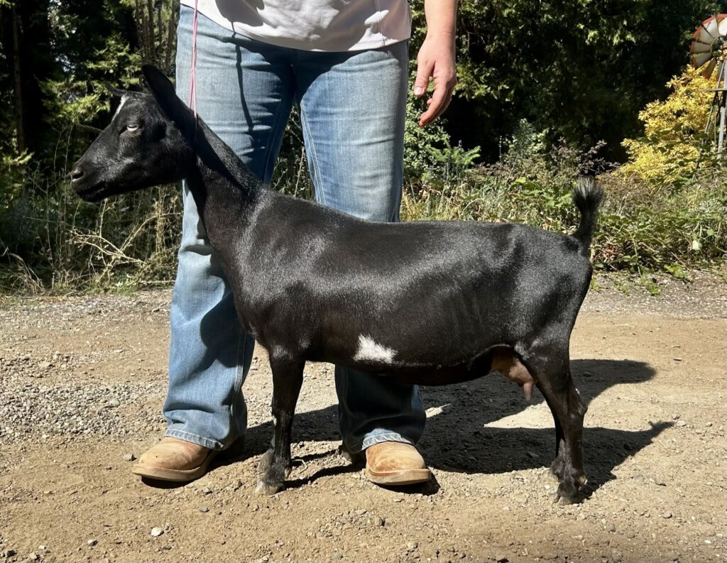 This young Velvet daughter has really blown us away! She reminds me so much of her dam. I truly think that in another year they will be hard to tell apart (at least for hubby lol). They share all the same markings! Really excited to see her first freshening udder. She is the second Curbstone Valley AD Prophecy daughter to earn her Junior leg and win Best Doe in show!